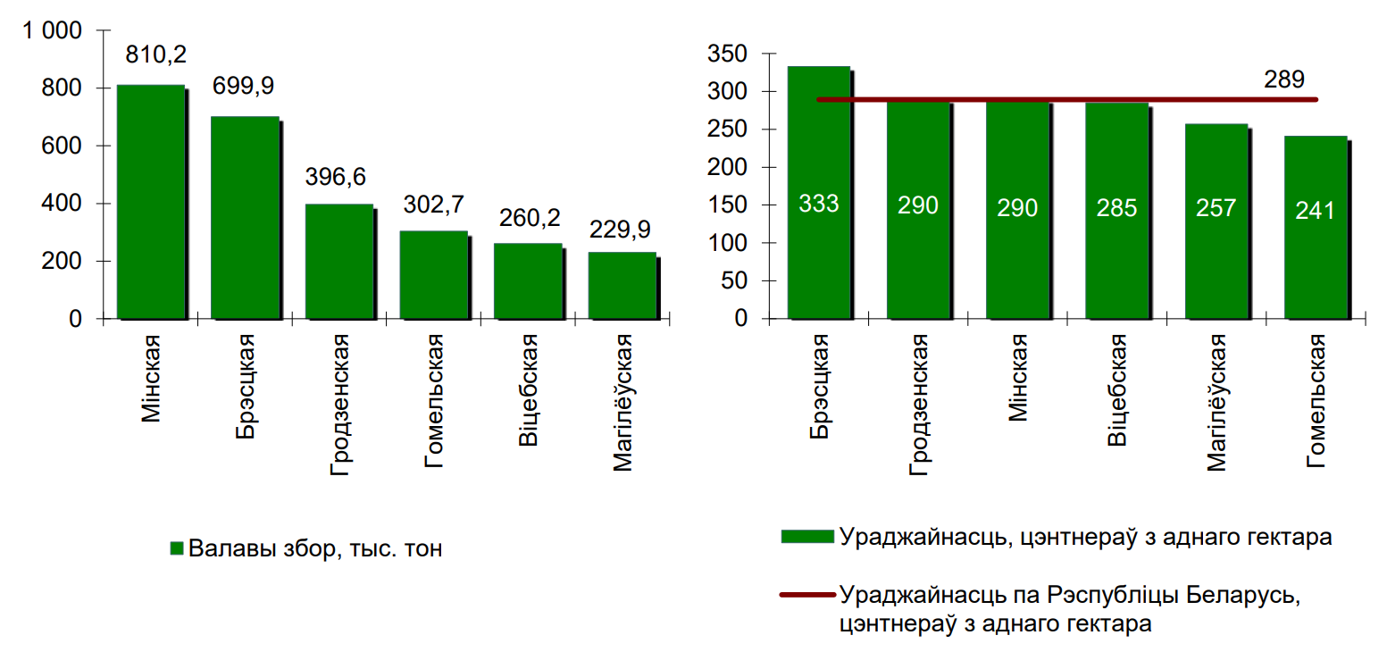 Валавы збор рапсу склаў 910,3 тыс. тон, з аднаго гектара ўбранай плошчы атрымана 20,9 цэнтнера.