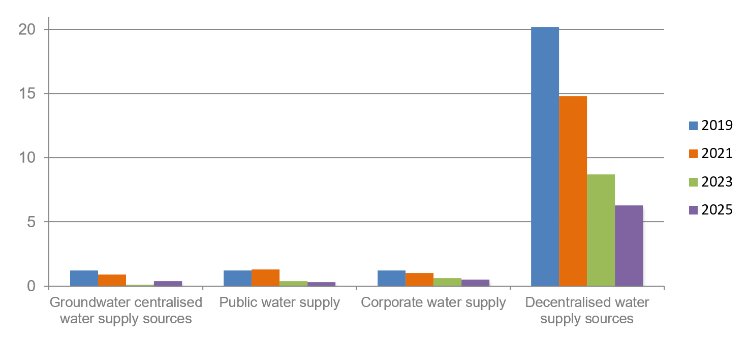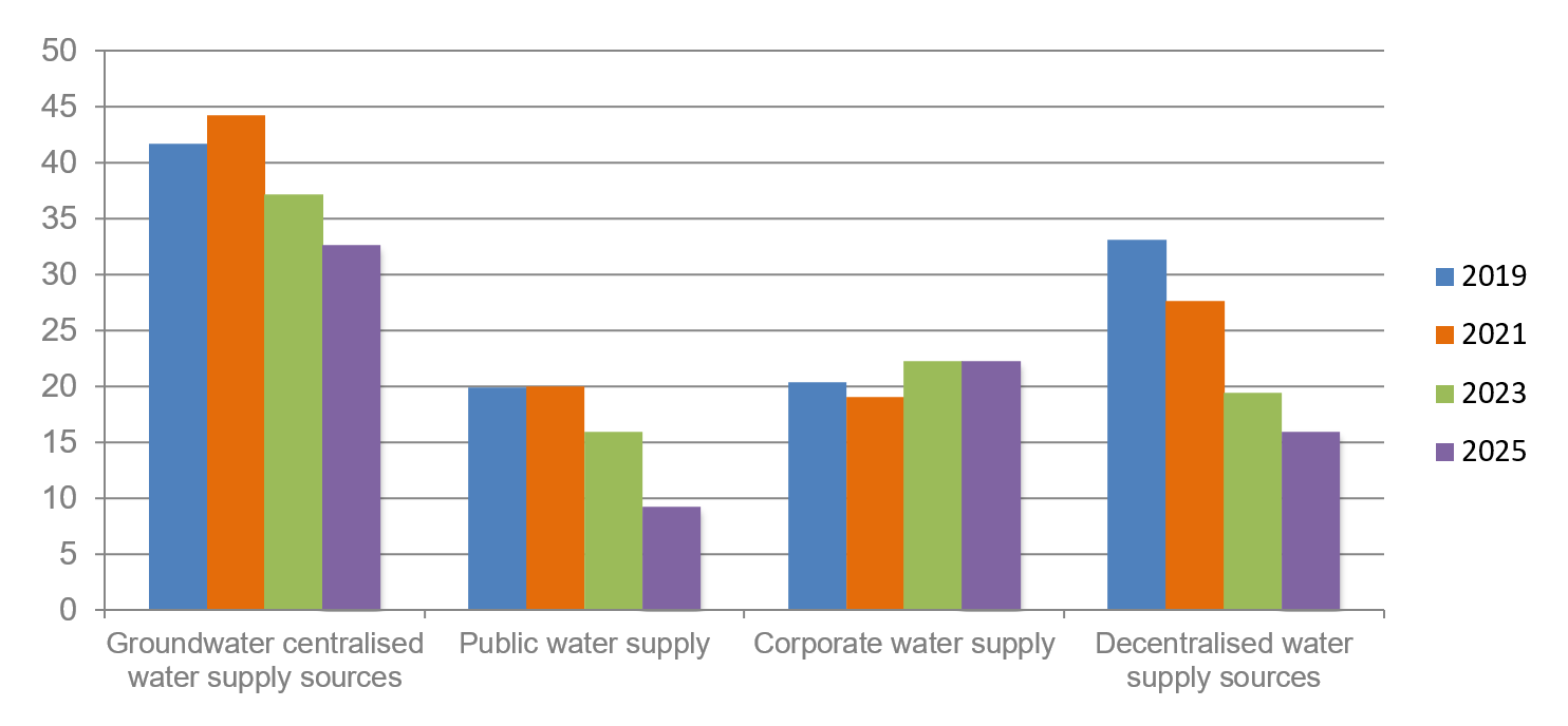 Proportion of samples tested for sanitary chemical parametres not compliant with hygienic standards