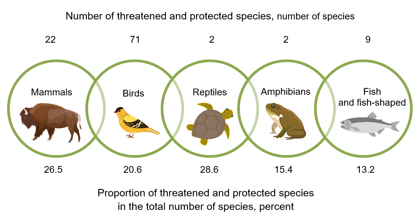Total numbers of animal and plant species in particular taxonomic groups, the numbers of protected species and the numbers of threatened species (in the context of categories of the national nature conservation significance).