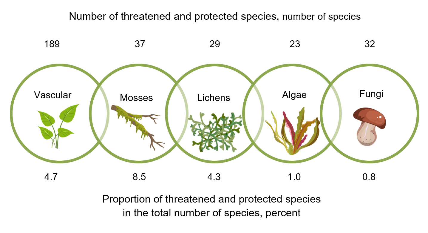 Total numbers of animal and plant species in particular taxonomic groups, the numbers of protected species and the numbers of threatened species (in the context of categories of the national nature conservation significance).