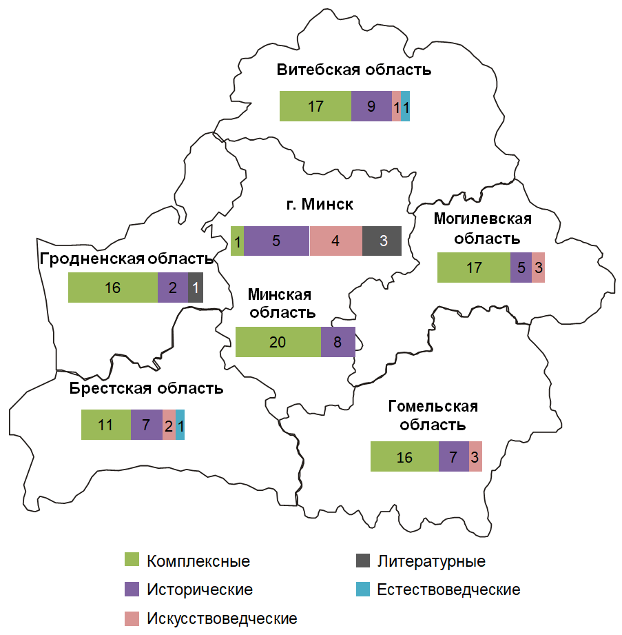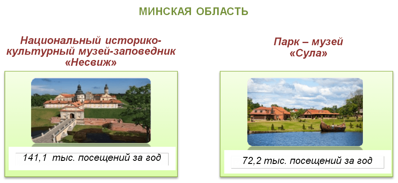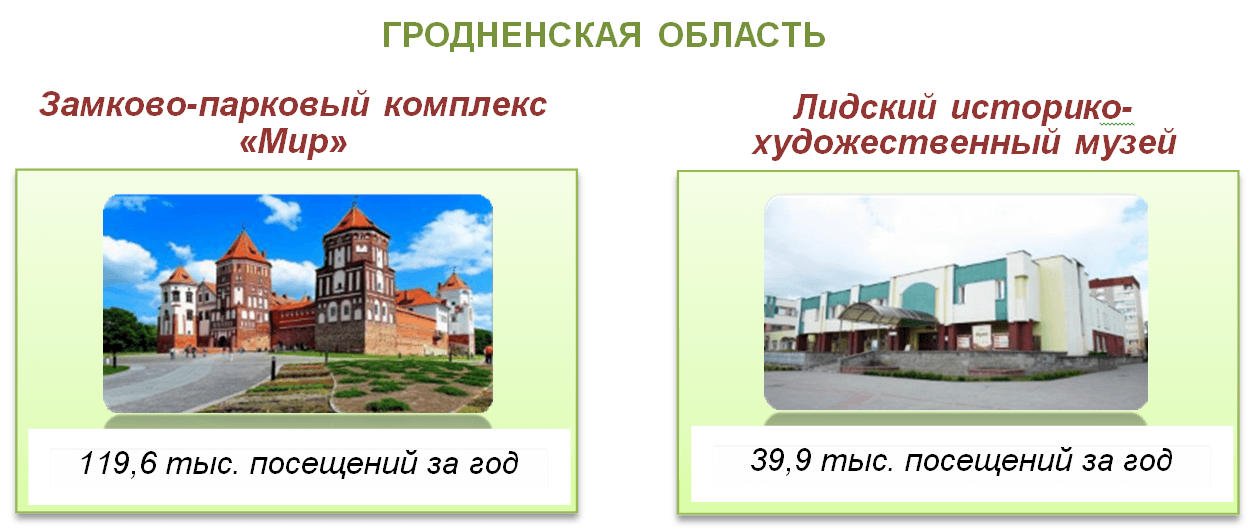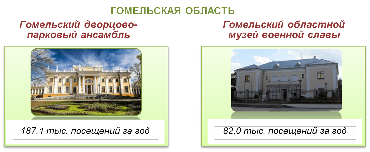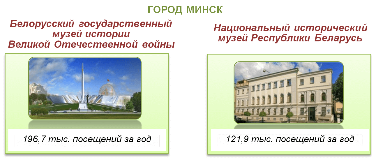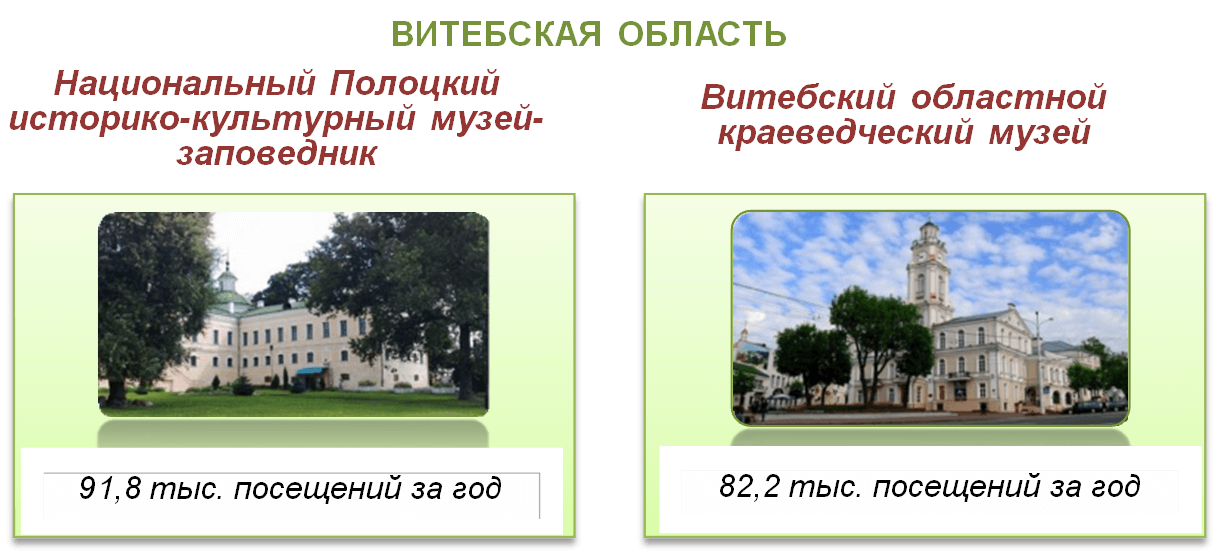 Наиболее популярные музеи областей и г.Минска в 2020 году