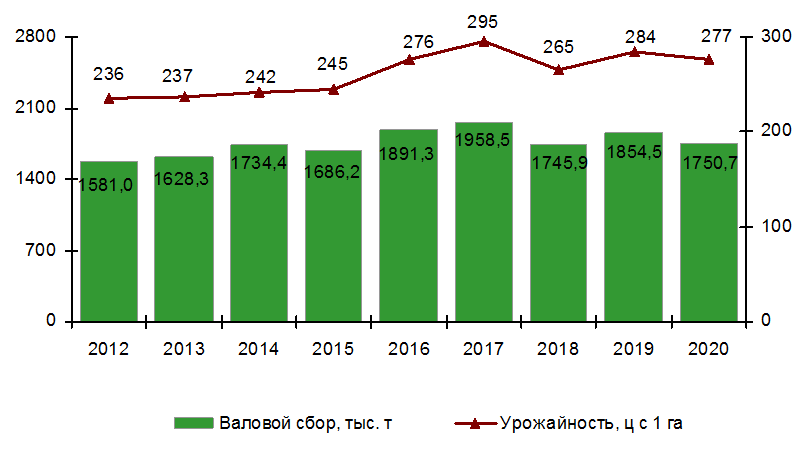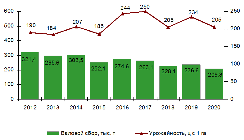 Валовой сбор и урожайность овощей