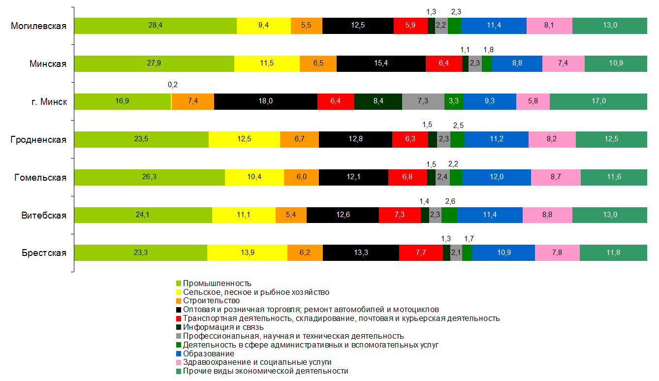 «Виды экономической деятельности» ОКРБ 005-2011; в процентах к итогу)