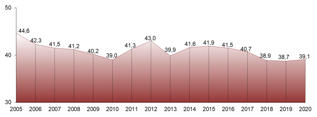 в процентах к потребительским расходам)
