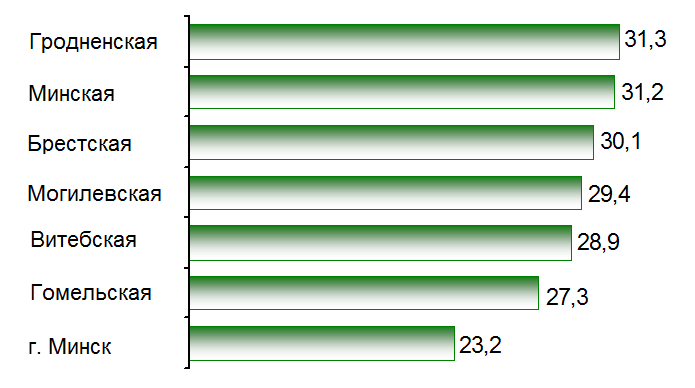Обеспеченность населения жильем по областям и г.Минску
